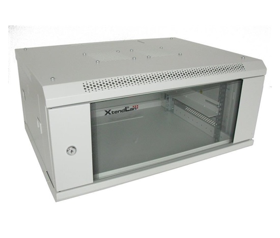 XtendLan 19″ nástěnný rozvaděč 4U 600×450, nosnost 60 kg, skleněné dveře, svařovaný, šedý