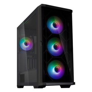 Provedení skříně:Midi Tower; Barva skříně:Černá; Počet pozic 3.5″ (HDD):2; Počet pozic 2.5″ (SSD):2; Podsvícení:RGB